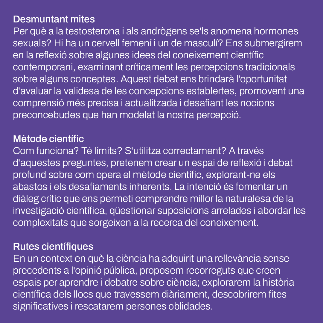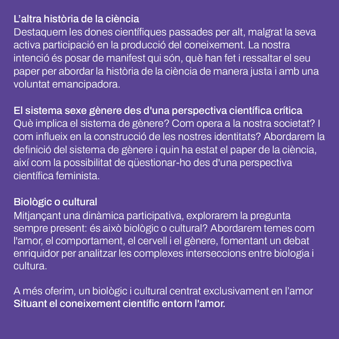 Els tallers que oferim estan oberts a tota la comunitat científica però també a aquelles persones que se les considera fora d’aquesta comunitat, tant per tenir les eines per qüestionar certs estaments, com per ampliar coneixements sobre ciència.